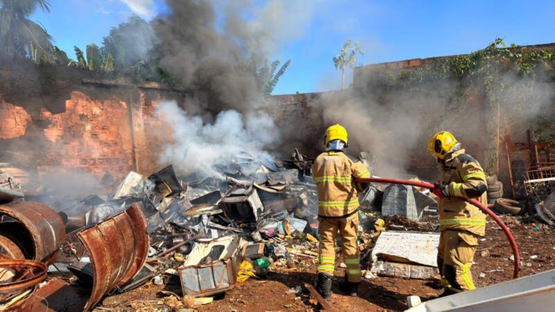Depósito de recicláveis pega fogo e bombeiros são acionados em Leopoldina