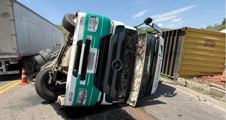 Uma carreta nove eixos, carregada com dois contêineres, tombou na pista e atingiu a ambulância que seguia no sentido contrário. A carreta fazia parte de um comboio de veículos da mesma transportadora que seguia com destino ao Rio de Janeiro. Já a ambulância, pertencente ao município de Volta Grande, viajava para Muriaé transportando dois pacientes.