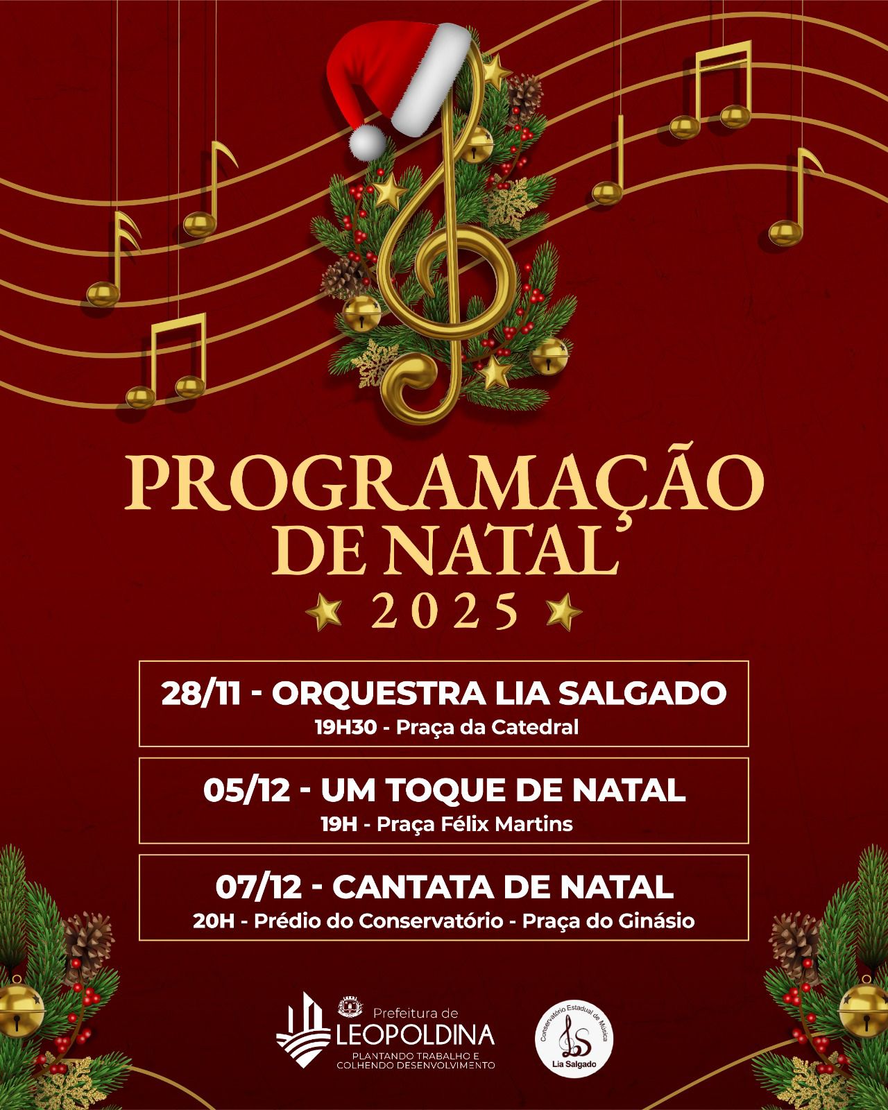 A Prefeitura de Leopoldina, em parceria com o Conservatório Estadual de Música Lia Salgado, preparou uma programação especial para encher nossas praças de música, emoção e encanto.