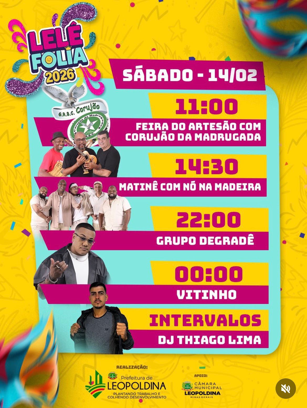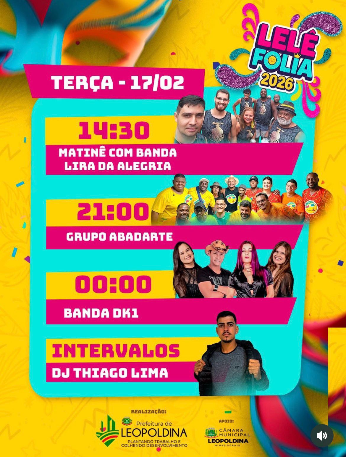 E tem novidade boa: a entrada é 100% gratuita e o Lelê Folia agora ganha um novo cenário, na Praça Félix Martins, pronta pra virar o palco da alegria!Já pode separar o look, o glitter e a energia, porque o Carnaval de Leopoldina vem com aquela vibe contagiante que só quem vive sabe!