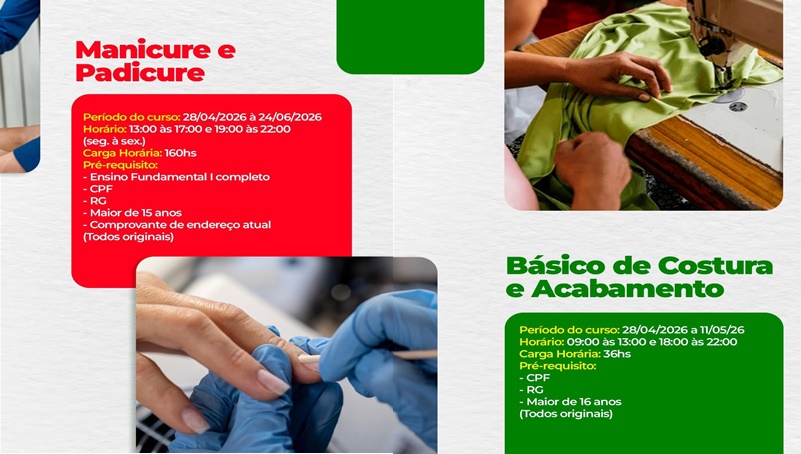 O SENAC, em parceria com a Prefeitura de Leopoldina, está oferecendo cursos gratuitos para quem deseja se qualificar e alavancar a carreira!