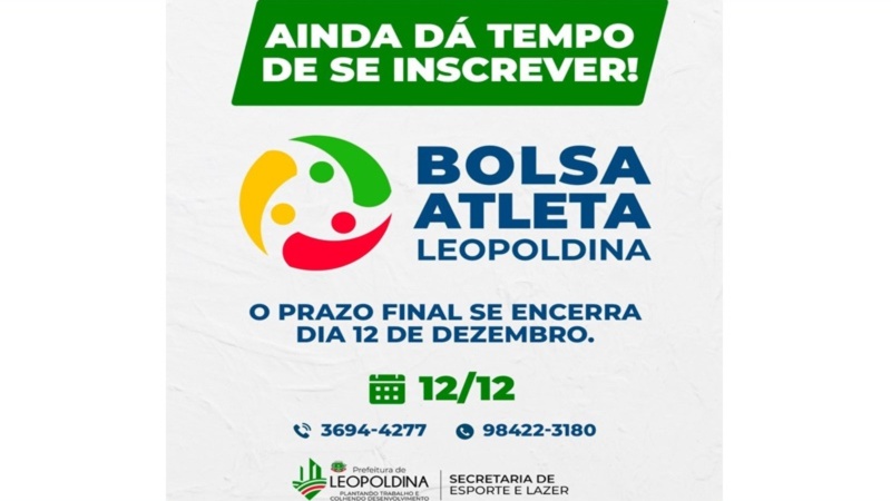 Bolsa Atleta: Inscrições seguem abertas até o dia 12 de dezembro em Leopoldina MG
